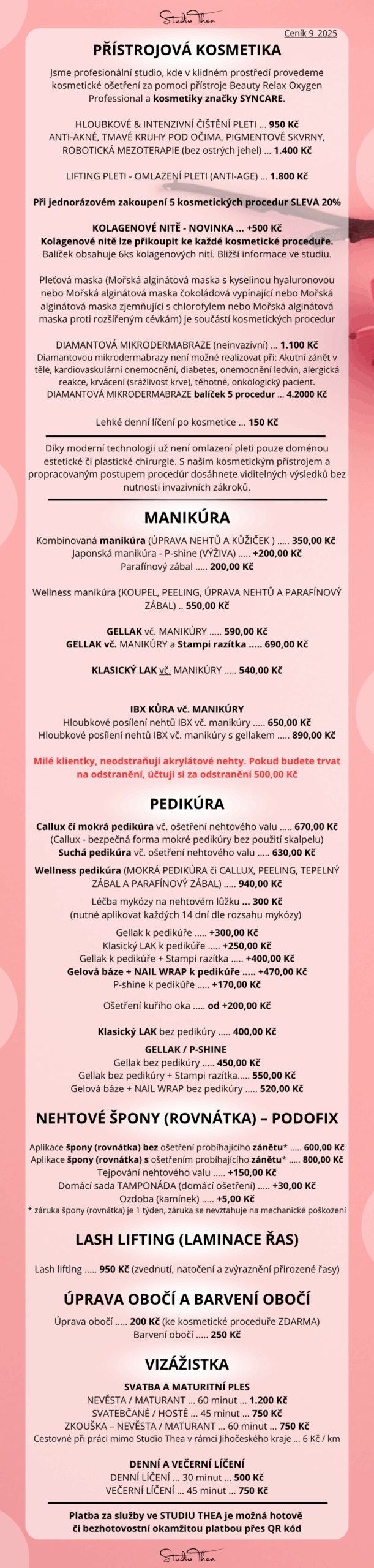 Vážení zákaznici, od 1.6.2025 bude v platnosti nový ceník 9_2025 s novinkami ve StudioThea. Děkuji